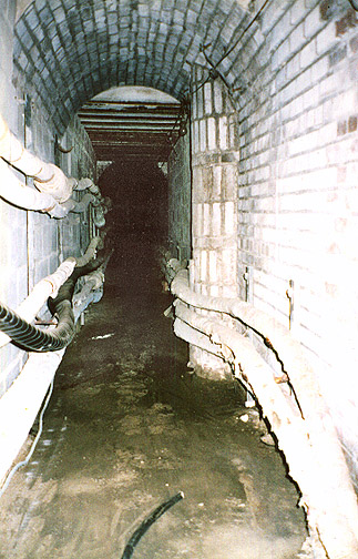 A cool tunnel with white brick walls and ceiling