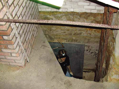 Captain Nordic looks up the ladder shaft connecting the power and gas tunnels.