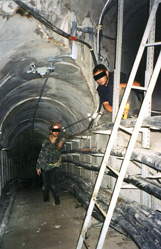 Max Action and Captain Worm strike studly poses in a multi-level, three-tunnel junction.