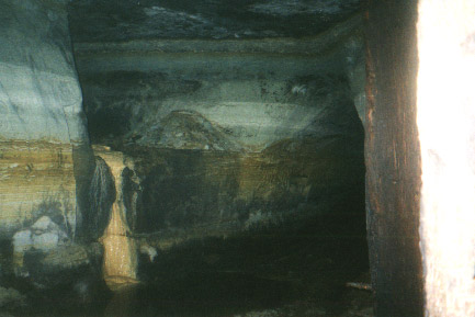 The mouth of Chute's Tunnel where it enters the cave. It goes off to the right, into the darkness.