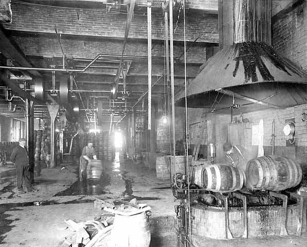Loading kegs way back in 1910. They had wild keg parties in 1910, I bet.