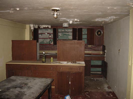 The bar area in the fancy suite on the "1 1/2 floor," located above the dining hall but still beneath the second floor.