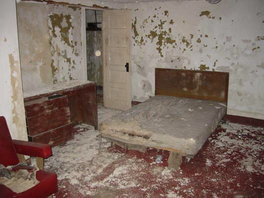 A pretty standard room in the abandoned hotel.