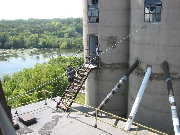 Slim Jim races down the rooftop silo ladder as Joe 3.0 waits.