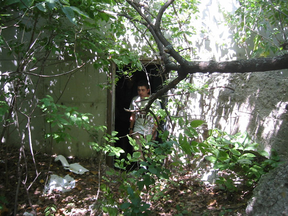 Joe 3.0 cautiously emerges from the tunnel into the woods.