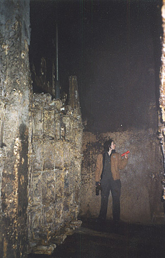 MuppySkum examines the open set of ultra-corroded floodgates; the closed set is visible at left. See the shiny hydraulic post thingy coming up out of the top of it?