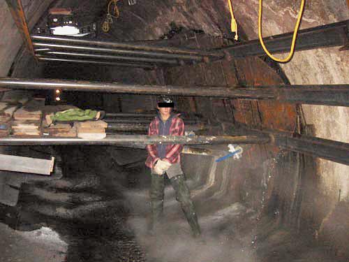 Slim Jim feels safe from the army of CHUDs that this bizarre iron super side-passage blocker keeps out of our tunnel. Solvent-smelling fumes rise up in a mist around him.
