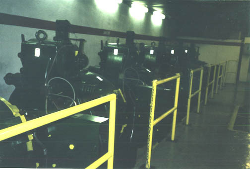 row of elevator winches, or whatever the technical term is for the make-em-go-up-and-down