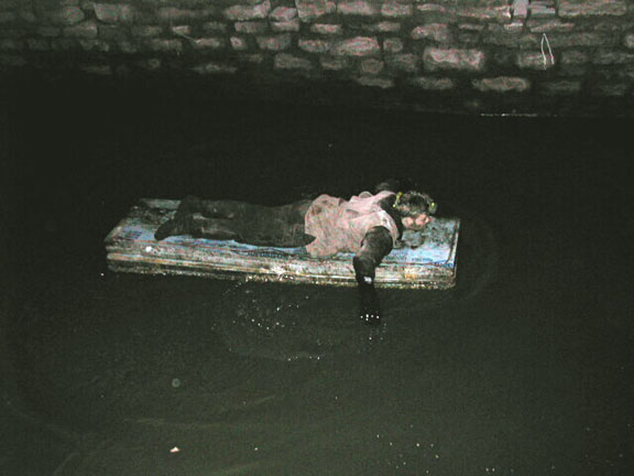 Max cruising past on a raft made of insulation foam board. You could really get going