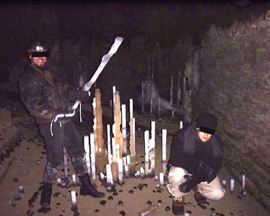 Max, Peter, and an ice stalagmite. See, it's funny when you hold something to your crotch, point to it, and say, "Look! It's my penis!"